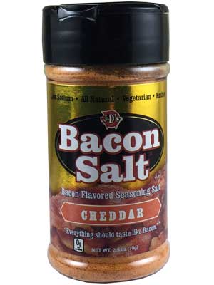 J&D’s Cheddar Bacon Salt (2.5oz/70g) Ingredients: Sea salt, maltodextrin, dehydrated garlic, paprika, cheese (pasteurized milk, cultures, salt, enzymes), whey, natural flavors, hydrolyzed vegetable protein, and less than 2% silicon dioxide, disodium guanylate & inosinate, sunflower oil, yeast extract. Contains: wheat, soy, milk.