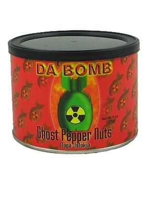 Da' Bomb Ghost Pepper Nuts (8oz./227g) Ingredients: Peanuts, seasoning (salt, spices, natural flavors, ghost chili pepper, dehydrated habanero pepper, maltodextrin, onion powder, garlic powder, citric acid, malic acid, extractives of paprika, natural smoke flavor), peanut oil.