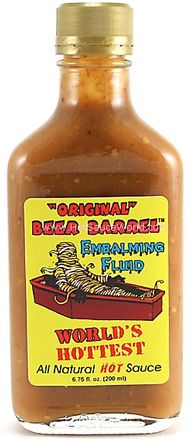 Original Beer Barrel Embalming Fluid Hot Sauce - Habanero peppers, Vinegar, Onion Powder, Garlic Powder, Select Micro-Brewed Beer and Salt.  | | |